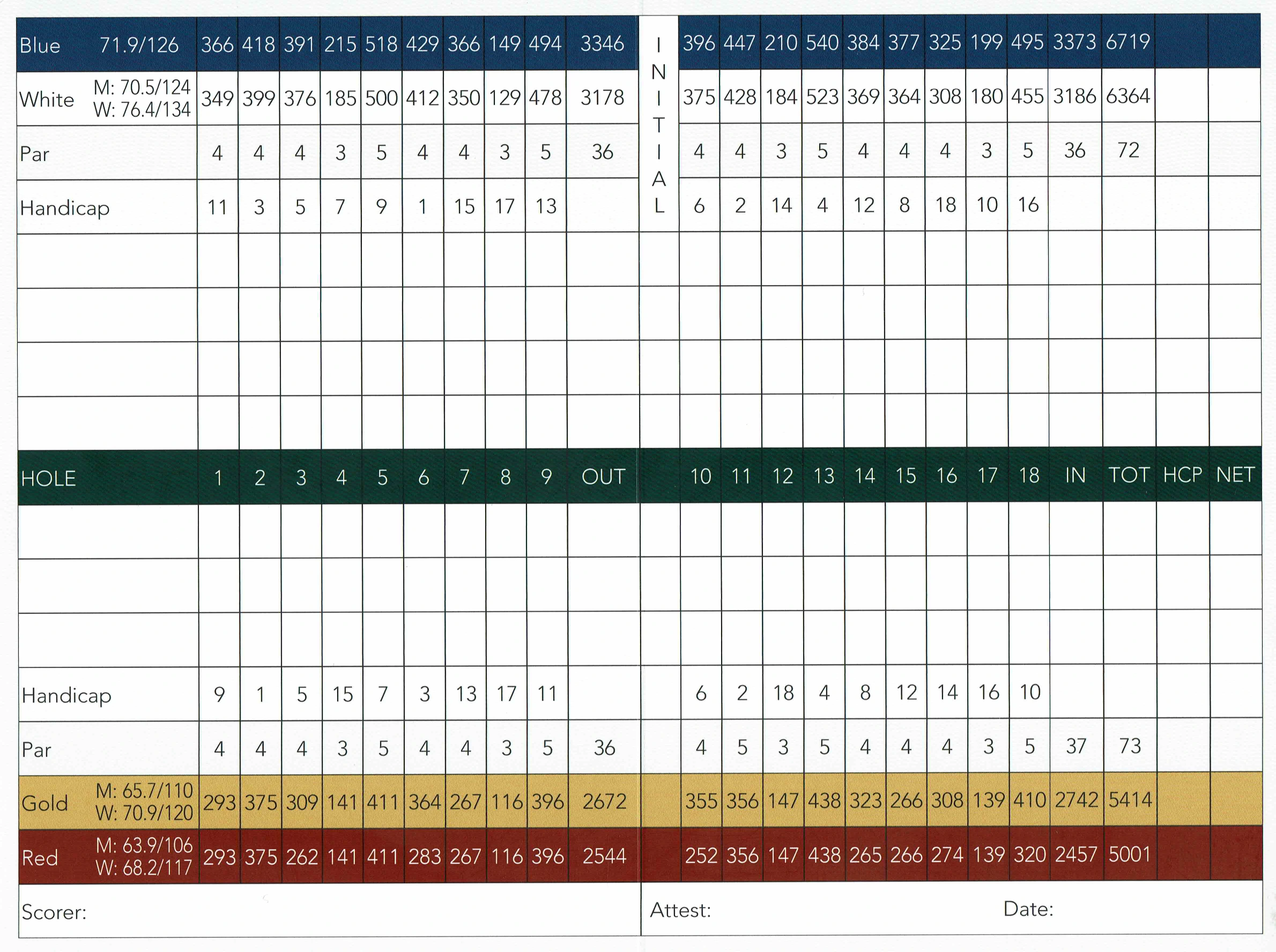 Meriwether National Golf Club 18 Hole Scorecard